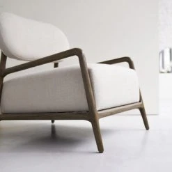 Des lignes arrondies pour ce fauteuil LORENS à la structure en bois solide et chaleureuse, qui par son coloris naturel apportera un côté épuré et zen à votre intérieur. Son dossier et son assise, garnie d’une mousse de 6.5cm d’épaisseur, profonde et ferme contribueront grandement à votre confort. Ses pieds arrière, inclinés, accentueront l’aspect relaxant de ce fauteuil. Un coussin rectangulaire conçu dans la même matière vient compléter l’ensemble.