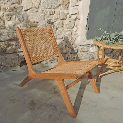 matière : Encadrement en teck et assise en rotin tressé