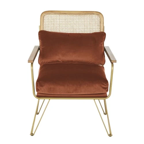 Revêtement coussin d’assise et dossier : velours (100% polyester), coloris orange écureuil