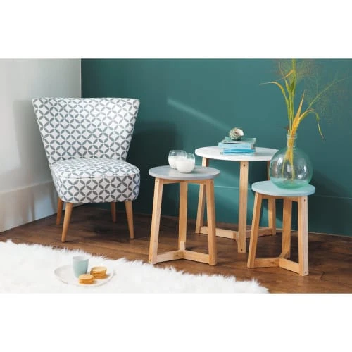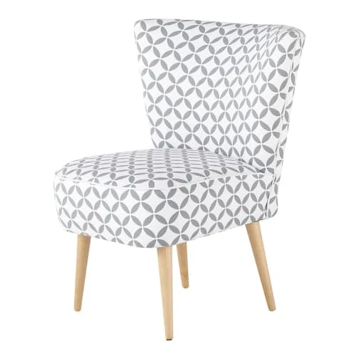 Animé par des motifs graphiques, le fauteuil vintage en coton à motifs gris et blancs SCANDINAVE mettra une pointe de fraîcheur et de fantaisie dans votre salon. Monté sur des pieds obliques en bois clair, ce fauteuil imprimé gris et blanc se coordonnera facilement à une déco rétro. Avec ses motifs stylisés, il réinterprète le style scandinave avec modernité et simplicité.