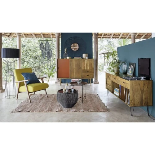 Pimentez votre dĂ©co avec le fauteuil vintage jaune moutarde HERMANN. Sa structure en pin et ses pieds en frĂŞne massif offriront une grande stabilitĂ©. En plein dans la tendance actuelle, ce joli fauteuil scandinave est aussi composĂ© d’une assise et d’un dossier très confortable. Audacieux et dynamique, le coloris jaune moutarde apportera une touche rĂ©tro ! On valide, et vous ?